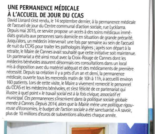 En présence de Monsieur le Maire de la Ville de Cannes, Bernard Brochand, des élus, de la Vice Présidente du CCAS, Mme Repetto, de...